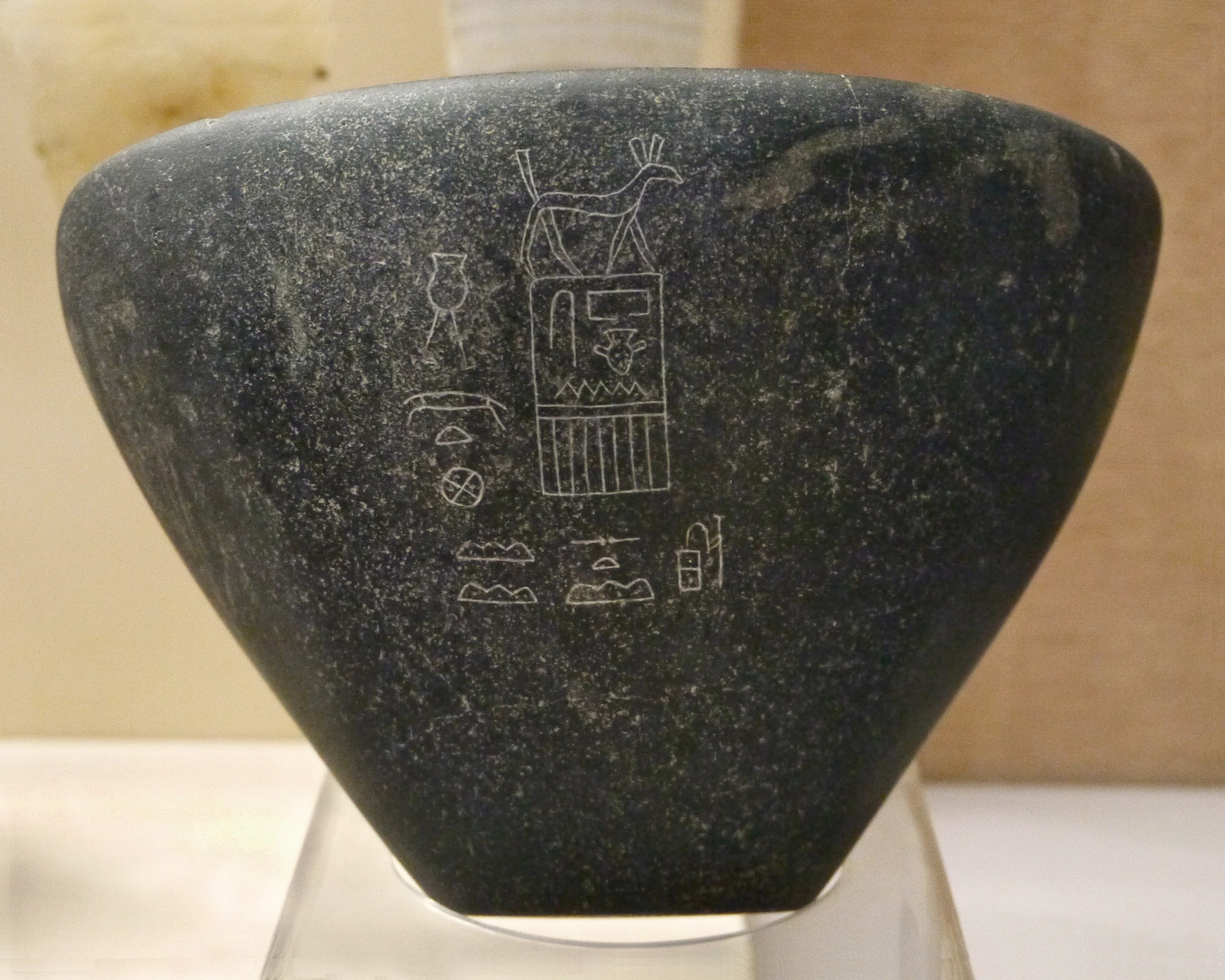 The museum website is claiming the standing figure in the seal below is the god Ash, but is it Set wearing the white crown, as the figure definitely has a pronounced snout?