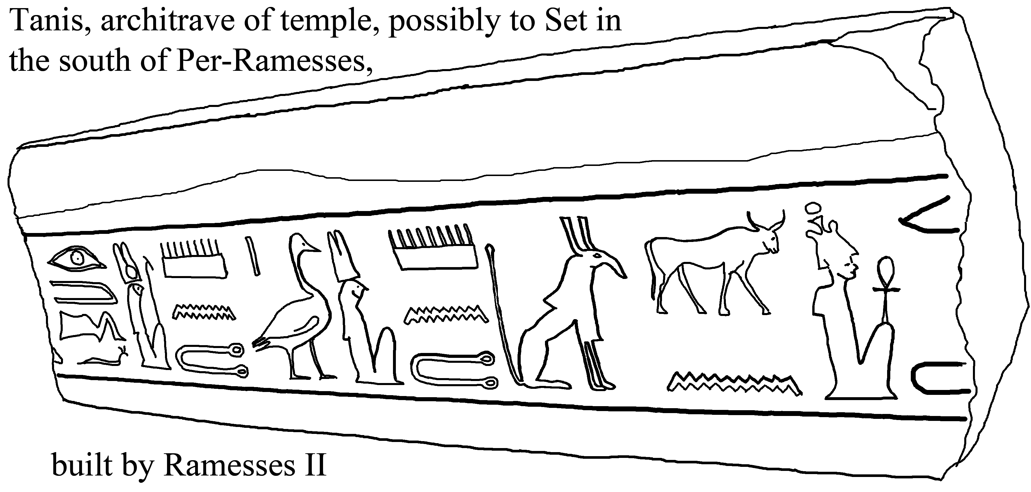 The source article of this image gives credit info, but because it was written for the paper magazine version, it does not correspond to the web version. Hence current location and past location and approximate date of creation are unknown. However, I did track down a a version at the BBC, which shows enough of the surrounding glyphs to reveal the Amun that is part of Seti II's name. The article's author, Patrick Houlihan, considers the Set animal 'monsterous' because he thinks it is a composite of one or more animals. Scholars vary on just what it was, a composite, or an animal now extinct:
