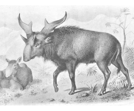 I've also read suggestions that the now extinct "Sivatherium (the name of which comes from the Hindu god Siva or Shiva, who shares some characteristics with Seth), which is a possible ancestor of the giraffe and okapi, and had strange "horns" or "antlers"" is a possible candidate: