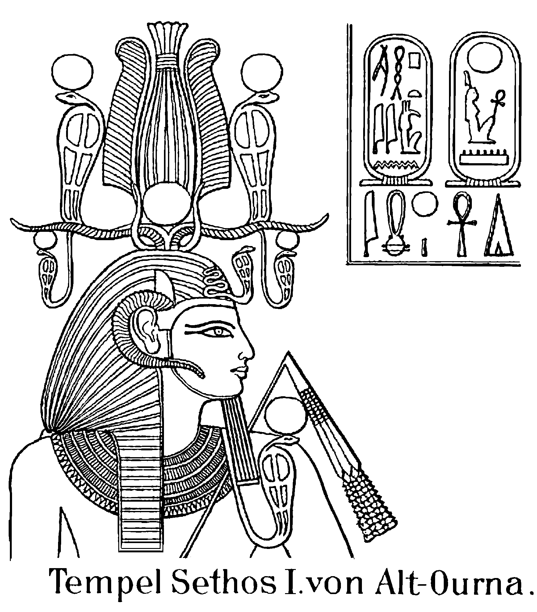 | Brand refers to the 'precise elegance' of Seti I's reliefs. Fortunately the old drawings and photos preserve the memory of them in better shape. Here is an elegant rendering of Seti I at Alt-Ourna: |